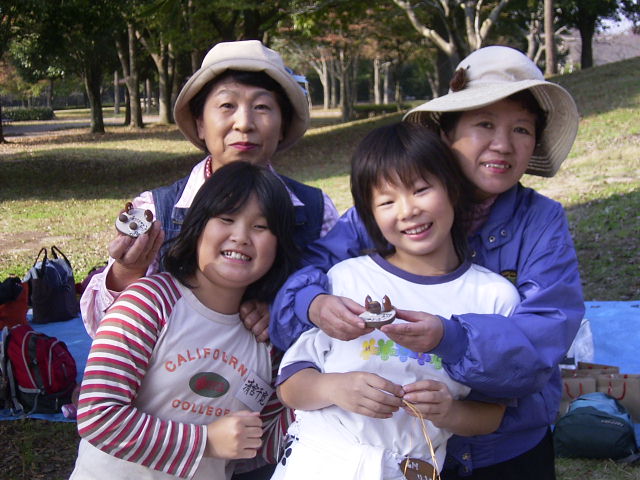 自慢の作品を前に記念撮影 次回も同じ組になりたいね! 指導員もほろり |