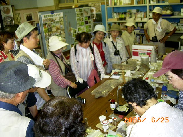 | 千葉県立中央博物館では3年前より「房総の山の自然や文化そのものを“資料”や“展示物”と考える新しい形の博物館活動」を展開している。(中央博物館だよりNo56参照)今回の研修会では講師に大木淳一氏をお招きし、三島小教室博物館の見学や現地での自然観察会、「房総の山のケモノたち」の講義などを通じ、その活動の概要や考え方を研修した。「建物がなくてもできる博物館活動、フィールド・ミュージアム」の成果が一日も早く「山の博物館」に反映されることを祈りながら貴重な1泊2日の研修会を終え、清和県民の森を後にした。 | |