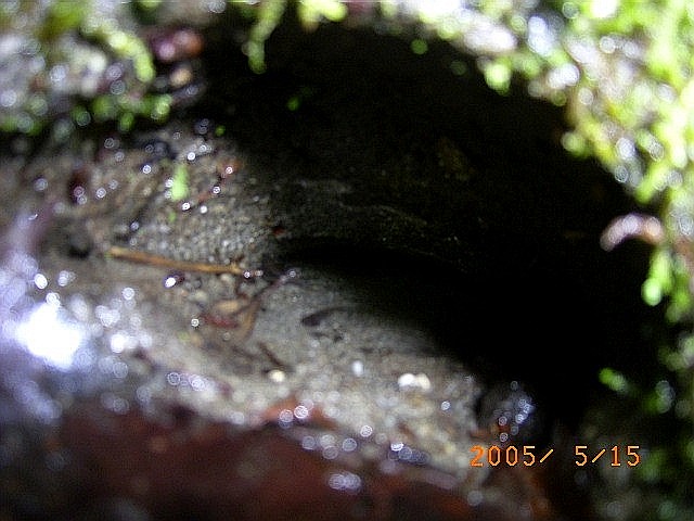 1556:地層の隙間のしみ出し水の中に生息するタゴガエルのオタマジャクシ |