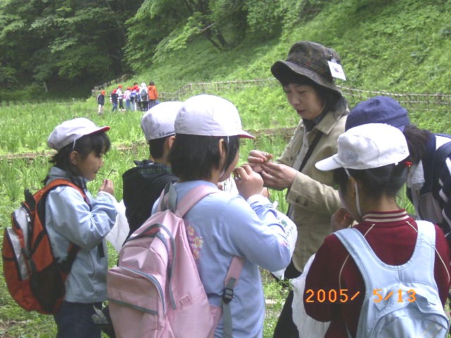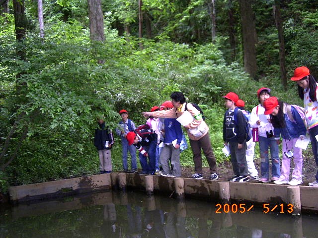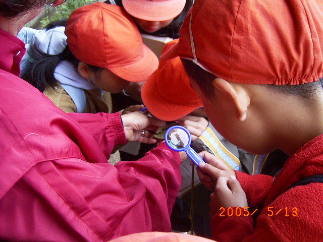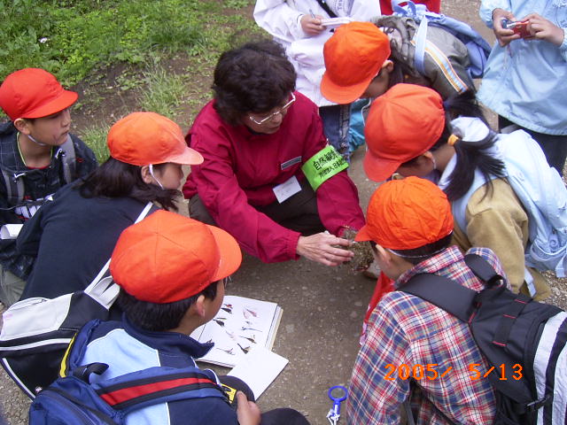 | 「おはようございます!」明るく元気な声が昭和の森、下夕田池周辺に響きわたった。千葉市立大椎小学校4年生132名の自然観察会の始まりです。大椎小学校では4年生の総合学習の一環として、昭和の森の自然を調べる活動を展開しています。自然を観察し、自らテーマを探し、自ら解決する。今回の自然観察会はその導入編として行われ、われわれ指導員はそのお手伝いをさせてもらいました。自然に親しみ、自然が好きになり、自然を大切にする心を育む。充実した内容の総合学習を通じて、豊かな感性を持つ子どもに成長してくれることでしょう。観察会での生徒さんたちの輝いた目に接し、それを確信したのは私だけではないと思います。 | |