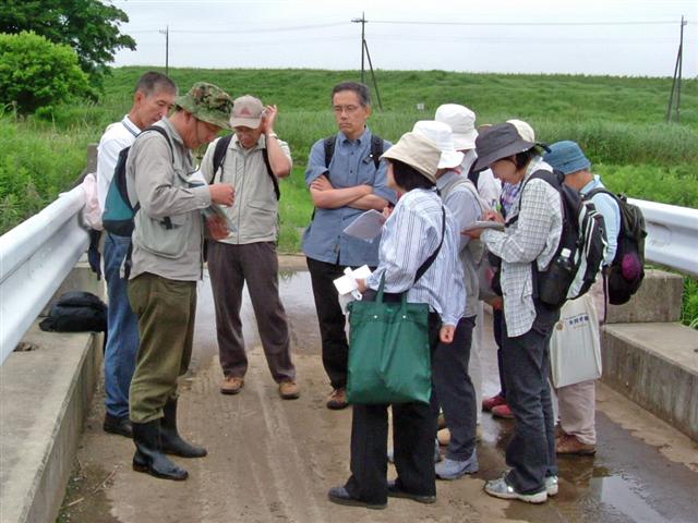 亀成川でモンドリでタナゴの採取を試みた。 小林指導員から二枚貝に卵を産み付ける魚のお話。 |