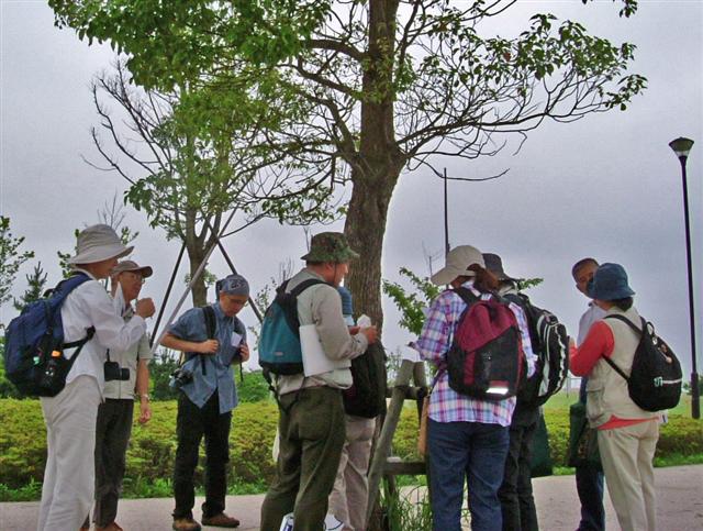 ひょうたん山のPeak41mで鳥獣保護区等位置図を広げての勉強会でした。 |