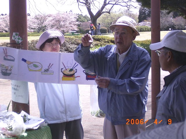 先輩指導員による野草料理法の特別教室 さすが大先輩! |