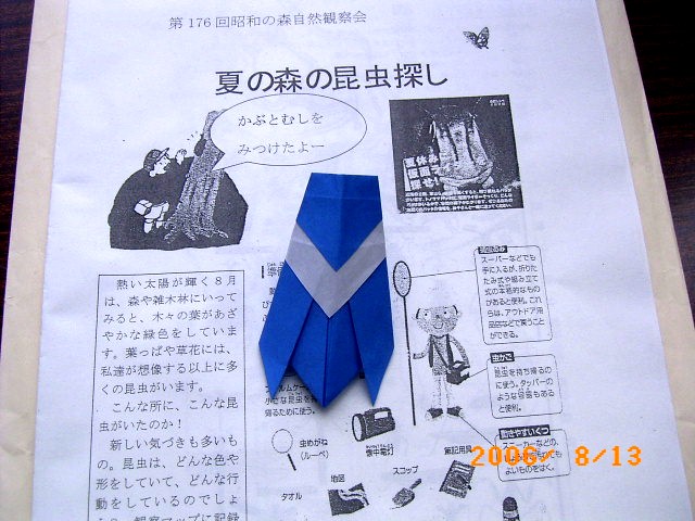 参加者用資料と折り紙で作ったセミ なにゼミかな? |