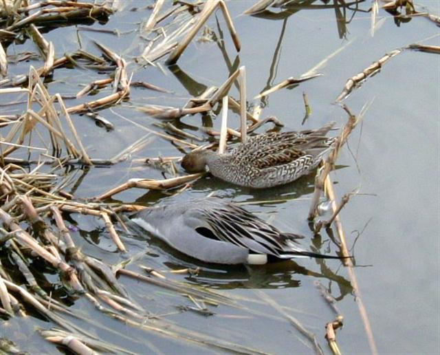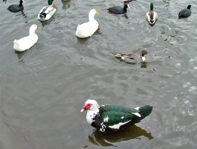 上はアヒル、手前はバリケン(あまり見かけない鳥です) |