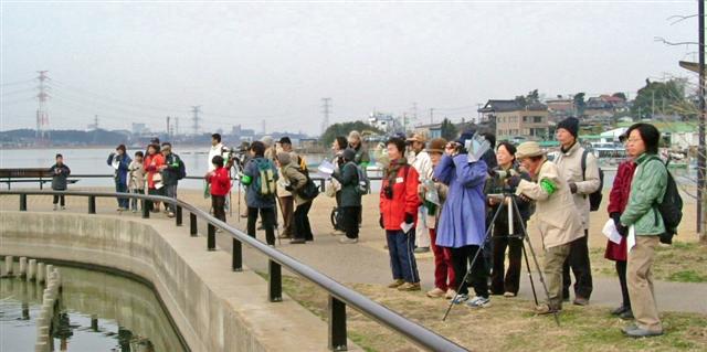 | 概要: 家族連れの参加者も多く、野鳥観察にはよい日和でした。手賀沼はエコトーン(移行帯)であり、多様な生き物が観察できました。「鳥合わせ」では、37種類の冬鳥が見つけられ、花や樹木の観察もあって、参加者の感想は“大満足”“満足”の欄がシールでいっぱいでした。東葛しぜん観察会のプラカードや参加者のワッペンを用意してよかったですね。 |