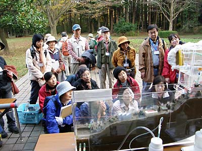 | 12月1日〜2日は小春日和の中で第6回フォローアップ研修会が行われました。 1日(土) 午後からの特別講義は千葉県環境センター・環境財団研究員による「房総半島の成り立ちと地下流体資源の有効活用」をテーマに昭和の森の地形・地質・地層・土壌・地下水流などを現地観察と模型により講義を聴きました。 夜は三人の会員による地域活動報告が行われ悩み・苦労・楽しみがある地域特有の活動報告を聞き、共に考える良い機会が得られました。 |
