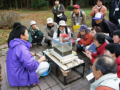 28 地下水流動実験を見る参加者 |