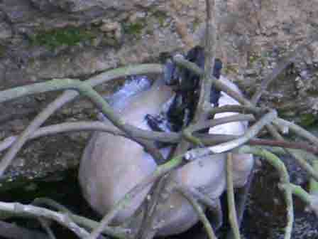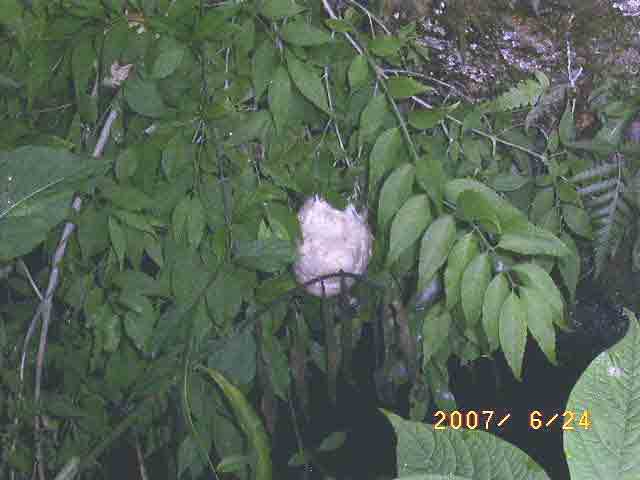 左写真(撮影;山下美佐子氏)モリアオガエルの産卵を間近に観察し、 |