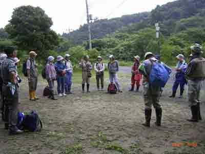 | 平成15年より毎年この時期に継続開催している梅が瀬渓谷の自然観察研修会。講師に中央博物館主席研究員の大木淳一氏をお招きし、梅が瀬渓谷の自然、特に梅が瀬渓谷の地形・地質、タゴガエルの生態などについて講師より現地でご指導を受け研鑽を積んできた。今年もタゴガエル、モリアオガエルなど11種類のカエルを観察した。特に、今回はサンコウチョウの鳴き声を聴き、モリオアガエルの産卵を間近に観察するという貴重な体験に胸ときめく研修会であった。同じ場所を、同じ時期に継続して観察する研修会。この有意義な研修観察会を今後も是非続けていきたい。 | |
