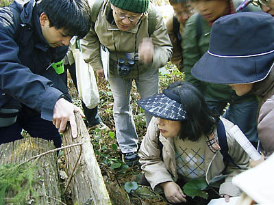![]() 腐った丸太の中にはいろんな生きものがいますね 越冬中のアマガエルも! |