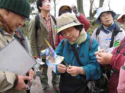 ![]() 2名の参加者と観察会・蕾のふくらみを観る(須田) |