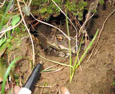 ![]() 冬眠の穴から顔を見せたアズマヒキガエル(須田) |