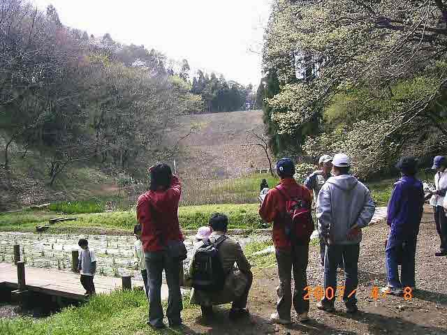 ![]() すこし離れてカタクリの生息する環境を観察する |