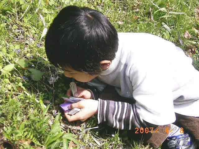 ![]() おにいちゃんと一緒に春の花の色探し 楽しいな! |