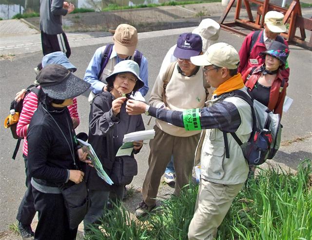 | 利根運河は、利根川(柏市)と江戸川(流山市)を結び、全長8.5kmで、明治から昭和にかけて約50年間利用されてきました。548種の野草・樹木の開花がみられる「水と緑の回廊」で、カモ類が飛来し、猛禽類14種が飛び交う自然豊富なところです。 参加者の感想: 日常の散歩道ですが、ゆっくり歩いて、よく観るとたくさんの花がありますね。 指導員の方々にいろいろと教えてもらって、天候に恵まれて、よい機会に参加できました。 |