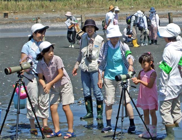 スコープでチドリやコメツキガニを観察して、よく見えました |
