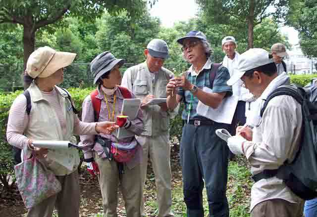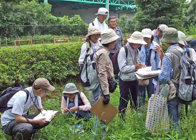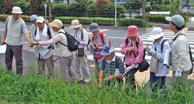 | いつも見ているのにあまり気にしない雑草、いつも見ているのにあまり分らないイネ科の雑草。野草と雑草の違いは? 帰化植物の中には繁殖力が強く、元の生態系に大きな影響を及ぼすものがあります(セイタカアワダチソウなど)。 イネ科の特徴、メヒシバやエノコログサの仲間、ヒルガオとコヒルガオの見分け方など、田井中さんに講師をお願いしての有意義な研修観察会でした。 |