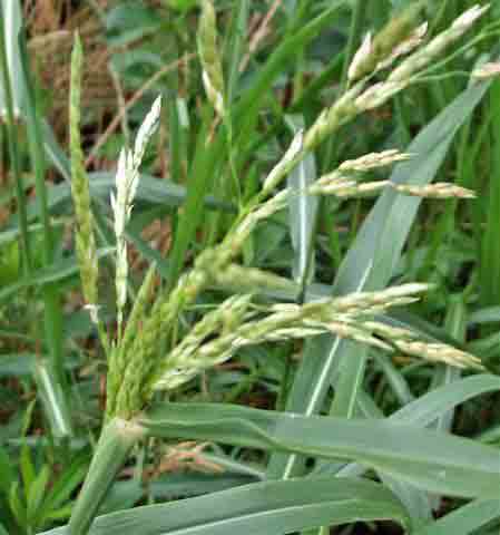 セイバンモロコシは、地中海沿岸の原産で、夏には2mくらいに繁茂し、ススキに似ているが葉の縁がザラつかない |