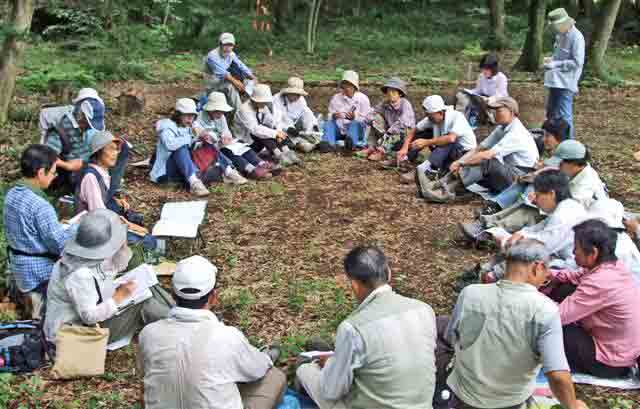 豊富どんぐりの森で田井中講師の解説で研修会をしました |