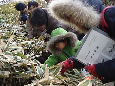 もの参加者がありました。2つに分かれ、みんなは寒さに負けず、春を待つ動植物の実際とその知恵