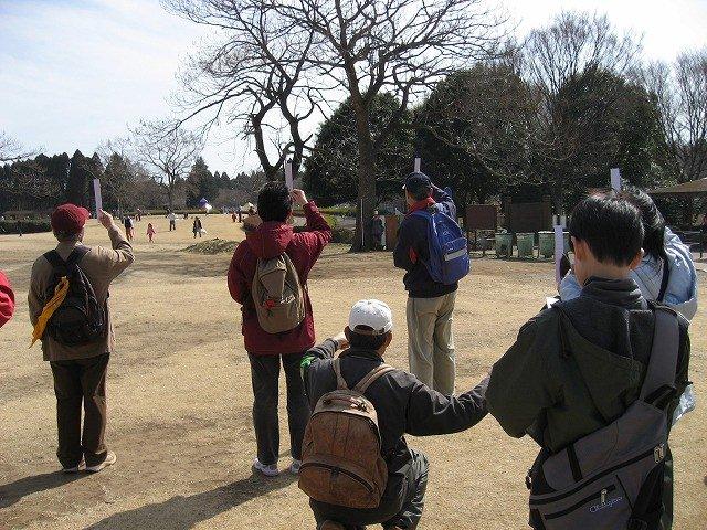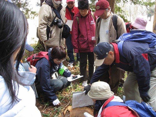 | 2月の観察会が、国際クロスカントリーの開催日と重なったために中止となったので、2カ月ぶりの昭和の森観察会となりました。この間に遊具の老朽化とバリアフリー対応の工事が始まり、、遊具撤去と森の一部伐採などで大きく様変わりしていました。すぐ近くまで宅地造成され、駐車場から街の様子が見えているのが残念でした。 3月の観察会は晴天に恵まれました。樹木の定義を聞き、昭和の森の中で高さ・太さ・樹冠の広がりなどの一番と変わった形の樹木探しに子どもたちと一緒にでかけました。簡単な測定板で樹高を測れることや幹周を測ると同時に直径が分かる巻尺に感動していました。また、子どもたちは意欲的に計測に参加して一番を見つけました。昭和の森の中に巨樹(幹の直径1m以上のもの)があることが分かり、一同感激!!! 昭和の森の樹木調査をしたいという意見も出たほどです。 樹木の寿命・本数・密度などについてもクイズをしながら楽しく、深めることができました。 |
