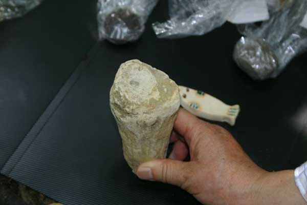 こんな形をしているフサゴカイの住み家の横断面、生痕化石でした。 |