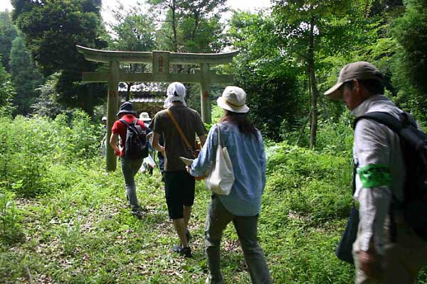 緑の道、標高80メートルの八幡神社に到着 ⇒ |