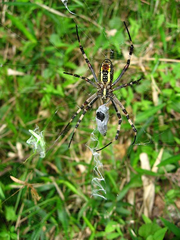 一瞬のうちにクモの糸に巻かれてしまったバッタ!それを観る参加者たちの驚き!! |