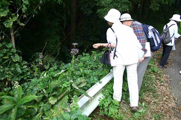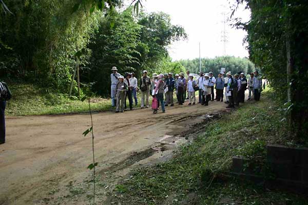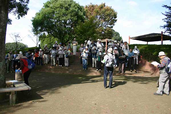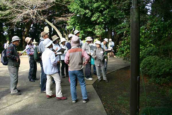 本丸跡は、閉鎖中の日航研修センター敷地内にあり普段は入れない。参加者の期待も最高潮、観察会は盛り上がりました。 |