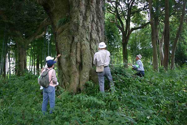 最終ポイントは、酒井氏が日泰上人を招いて開いたという本寿寺。境内の見事の巨樹に「これは!スゴイ!」の歓声が飛び交う。これほどのスダジイには、なかなかお目にかかれない。樹形が撮れず残念。 |