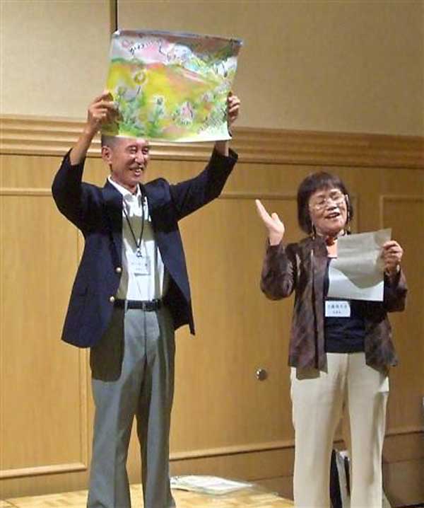 | 記念講演: 「自然観察あれこれ」浅間茂氏から夜行性の動物、ミドリシジミの色やボルネオの自然観察のお話しをしていただきました。パネルディスカッション:「25年間の自然観察指導員活動を振り返って」の楽しい思い出話を聞きました。懇親記念パーティーでは乾杯の後懇親交流会、アトラクションで和仁さんの胡弓演奏や近藤さんの紙芝居で楽しいひと時でした。 |