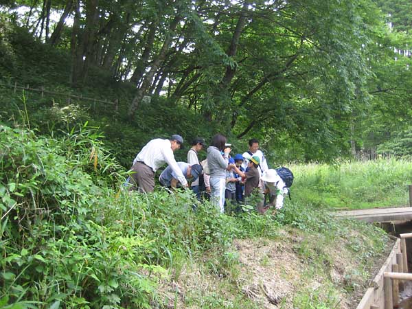 | @ 14:45から昭和の森湿生植物園一帯のゲンジボタル生息地に共生している生き物、植物などを観察。 |