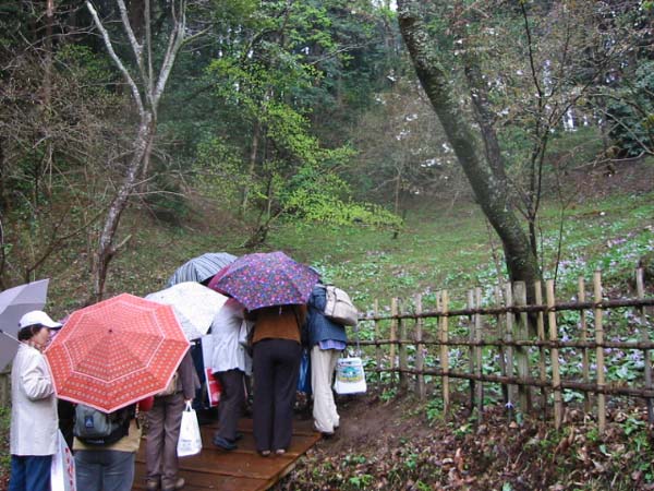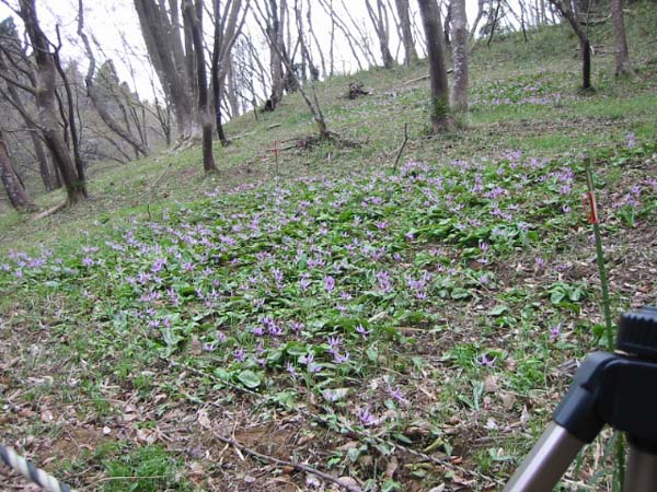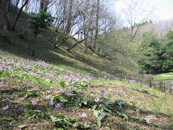 | 開花時期は昨年よりやや遅かったが、開催日は満開、4日、5日、6日は絶好のカタクリ鑑賞日、雨の7日以外の開催3日間は例年より多数の参加者で賑わいました。 今年のカタクリの花は、大きく色も良く、特に中菖蒲田の斜面に咲くつつじ色の花3株が一際観察者の目を集めていました。また自生地のカタクリは斜面上下、左右に広がって花弁を上部に重なるように反り返らせて全開、感嘆の声があがっていました。 7日は、予報通り10時頃から雨が降り出し中止としまたが、31名の方が三々五々傘をさし静かに咲くカタクリを楽しまれました。 参加者の感想 @ 去年より今年の方が素晴らしいですね。 A 泉自然公園より花が大きく色も濃く、こちらの方が良いと思います。 B 昭和の森はサクラが美しいと思って来ましたが、カタクリもあって新たな発見をしました。 C 花がだんだん広がっているようで、手入れが大変だったでしょう。 D カタクリを大切に守り育てておられる皆様に感謝いたします。 |