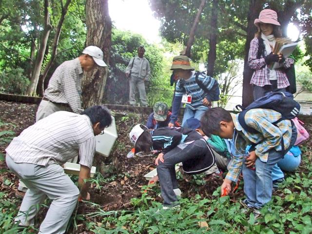 | 身近な自然体験を通して、自然保護の大切さを実感し、具体的な環境保護活動に結びつけることを目的としている講座です。手賀の丘公園で自然観察や野外実験、どんぐりの家で環境紙芝居や環境保全活動宣言を楽しい雰囲気で行いました。 第2回目は11月16日(日)に開催し、都市に住む人間の豊かな生活の維持に森林が果たしている役割、森と人と関わり合いの歴史、森林環境を守るための方法について学びます。 |