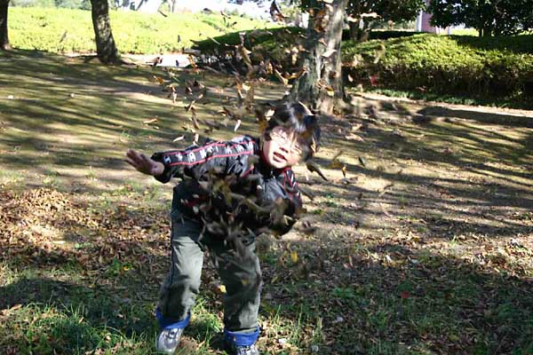 ふかふかじゅうたん、落ち葉シャワーだ! |