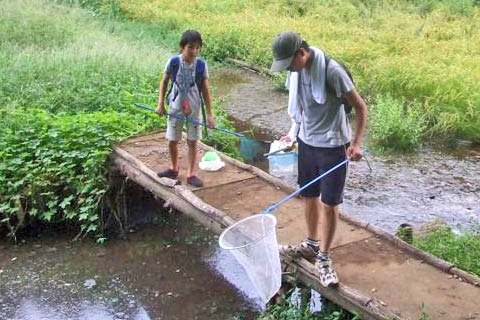 小川には虫や魚がいますか? |