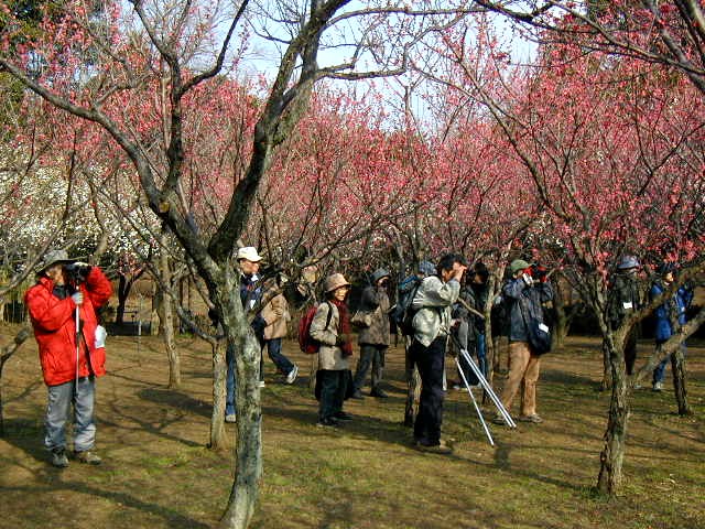 | テーマ 青葉の森公園の梅と冬鳥 | 参加者 一般 50名 スタッフ=千葉市自然保護係2名+自然観察指導員10名 |