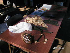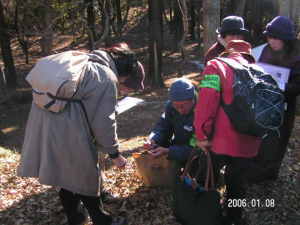 | 昨年の参加者数31名を考え、4コースの樹木を下調べの時に用意し、名札も準備しました。我々のコースは、天候を心配し名前を殆んど書いて名札を準備した為、参加者の方々には名札を書いていただけませんでした。実際参加者の方に書いてもらった他のグループでは、参加者の皆さんに大変喜んでもらったようです。 |