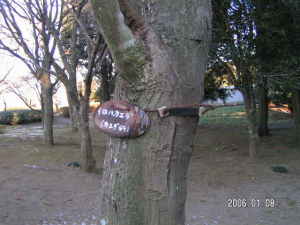 | 昨日、昭和の森付近は雪が降ったようで、薄っすらと雪がのこっていました。今日の名札付けに当っては、空模様と参加人数が気になっていたのですが、雲ひとつ無い青空。楽しい観察会を予感させます。 準備に当って、私はもっぱら名札作りと取り付け方に重きを置くことに決めていました。名札の材質形状については、泉自然公園にて見た間伐材斜め切りの名札が気に入り、その形状に決めました。 次に取り付け方ですが、よく見かけるスプリングやプラスチックの緩衝材を如何にするかを考えました。最初はタイヤチューブの輪切りを考えたのですが、ゴムの60B平板を見つけ、これが使えそうだと買い求めました。 名札については昭和の森公園事務所で作ってもらうことにしました。作って頂いた材料はスギと桜でした。枚数は90枚。最初、自然にやさしいのは墨かと思い、試しましたが字が滲んでしまいました。そこでペンキやニスを塗ることも考えましたが、焼くことにしました。ペンキを選ぶに当っては、ペンキのメーカーさんに相談し、耐久性は微妙ですが、看板などの文字や絵を描くペンキにしました。 |