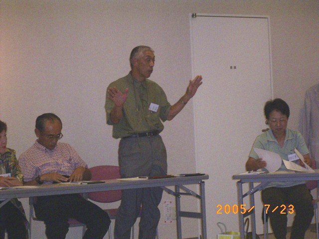 | 長年にわたり、小・中学校の第一線でご活躍中の塚本幸男先生を講師にお招きし、「子どもたちをひきつけるフィールドワーク」について講演していただいた。「小学校はどんなところか」、「小学校に入ってくる子供たちの心理は」、「一般の教室学習の他に総合学習の中で行っているフィールドワークは」、「子どもたちをひきつけるポイントは」等大変興味深く拝聴した。私たち自然観察指導員は教師ではない。しかし、小学生自然観察支援活動(SSSN)において、子どもさんたちが感動するお手伝をする我々にとって、是非自分なりに理解し行動に活かしたいものである。午後は各地域で子どもさんを対象に活躍されている指導員の活動状況、特に「子どもたちをひきつける工夫・努力」について、昭和の森こども観察会、SSSNの先駆者“四街道自然同好”など4グループが報告し、意見交換を行った。 |