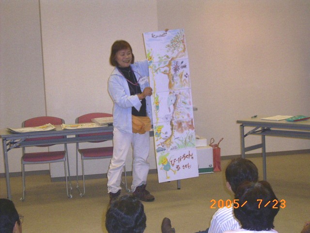 楽しい紙芝居のお話!茶々おおわだみなみ保育園での活動を実演する指導員 |