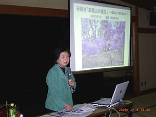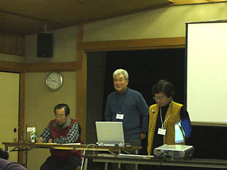 ![]() ![]() 2006年度行事計画案を説明する河添・盛一両副代表 |
