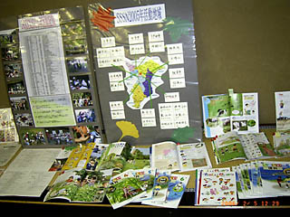![]() 会場に展示された小学校の教科書やSSSN活動記録資料 |